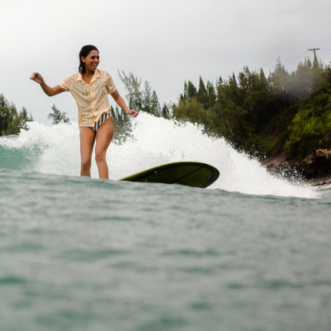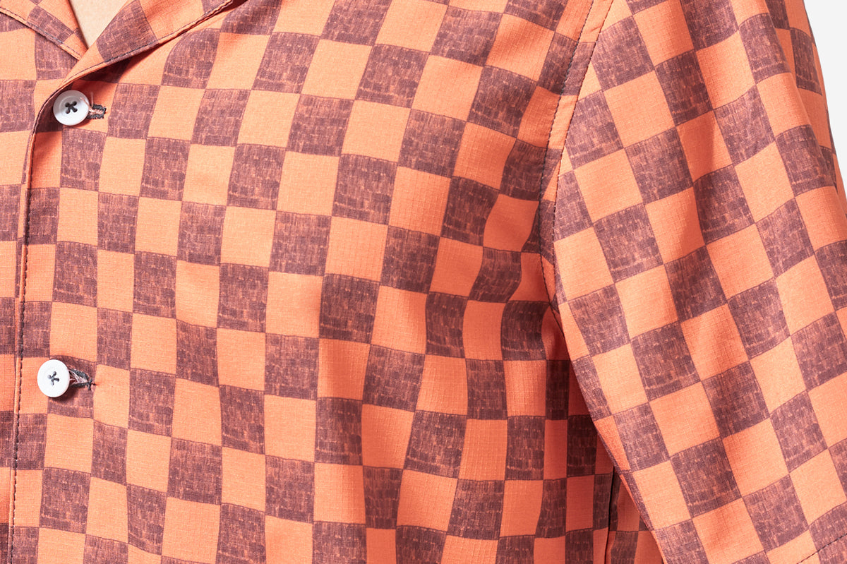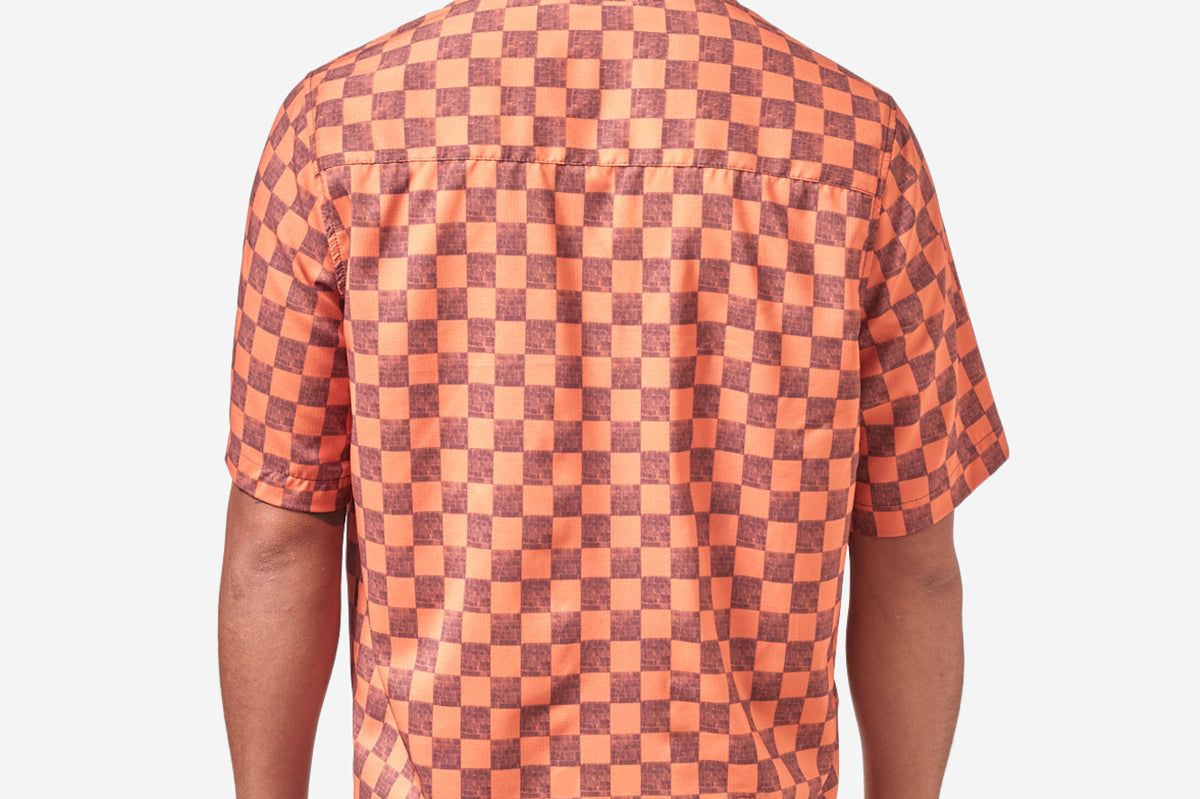 Ee-Cha (Round 2) is a lightweight button-up that is a modern take on the rash guard. The camp collar is inspired by classic vintage design to keep your style loose, in or out the water. Made from UV protectant Rip-Stop fabric for sun coverage and fitted with flexible rubber buttons for comfort when paddling.
